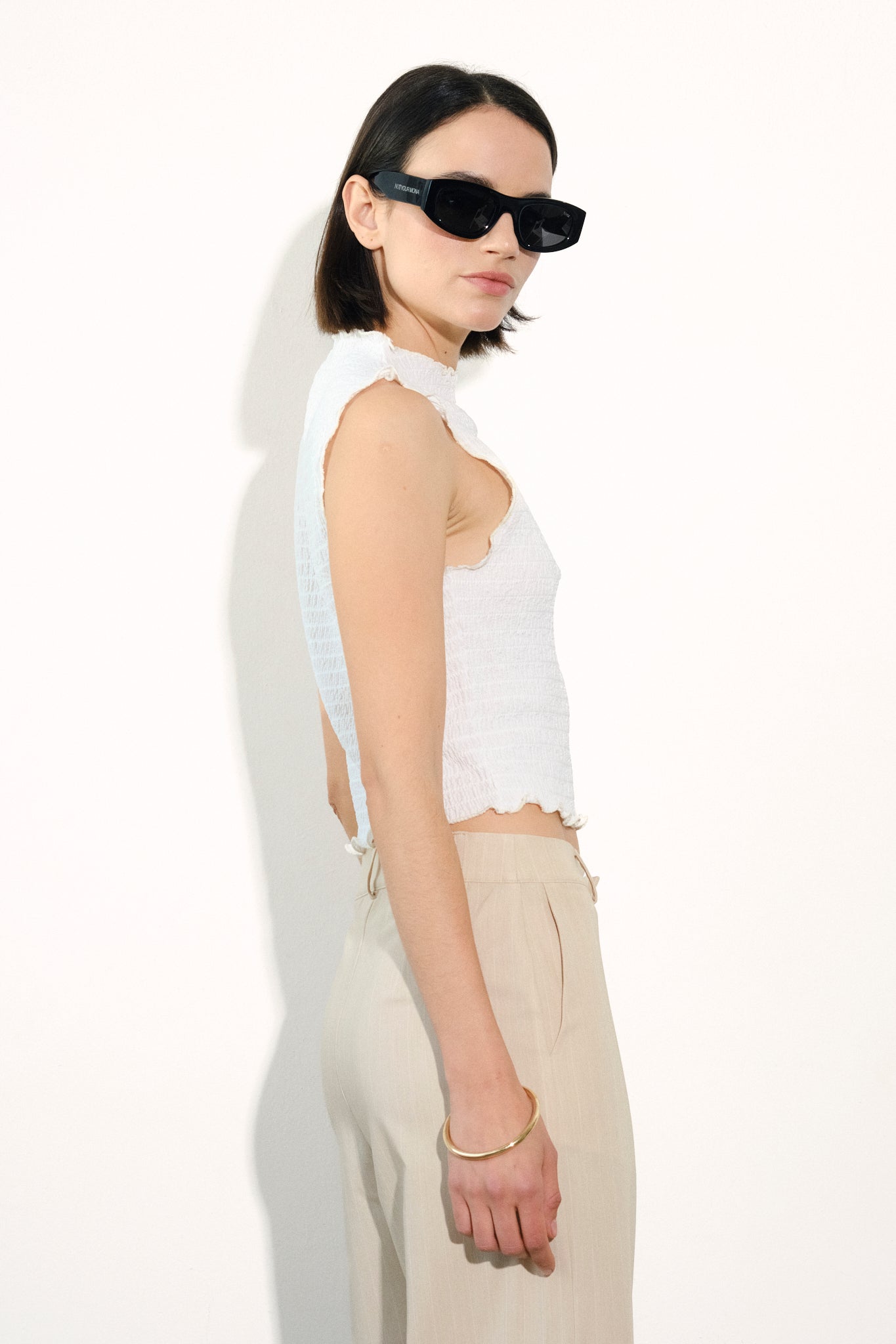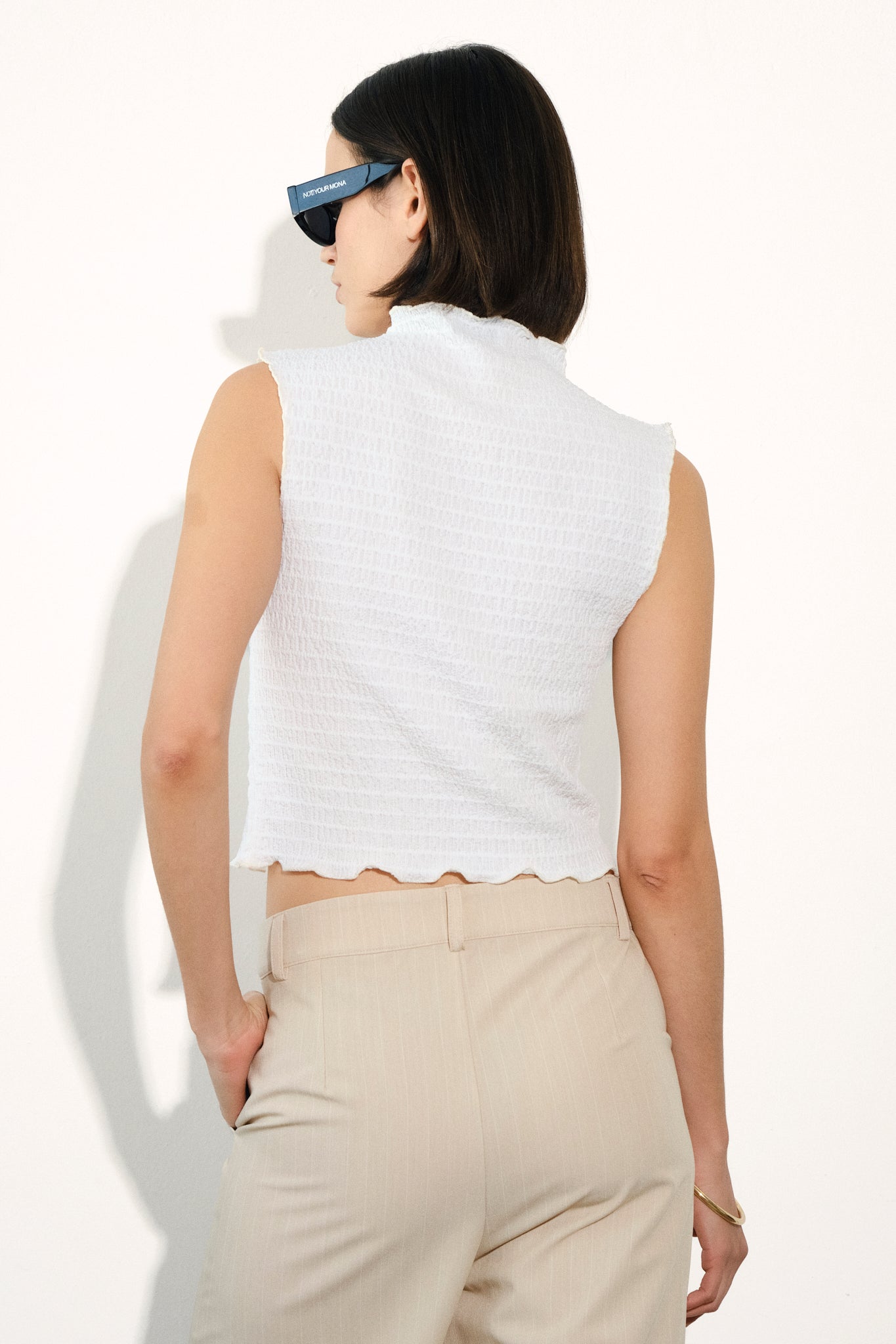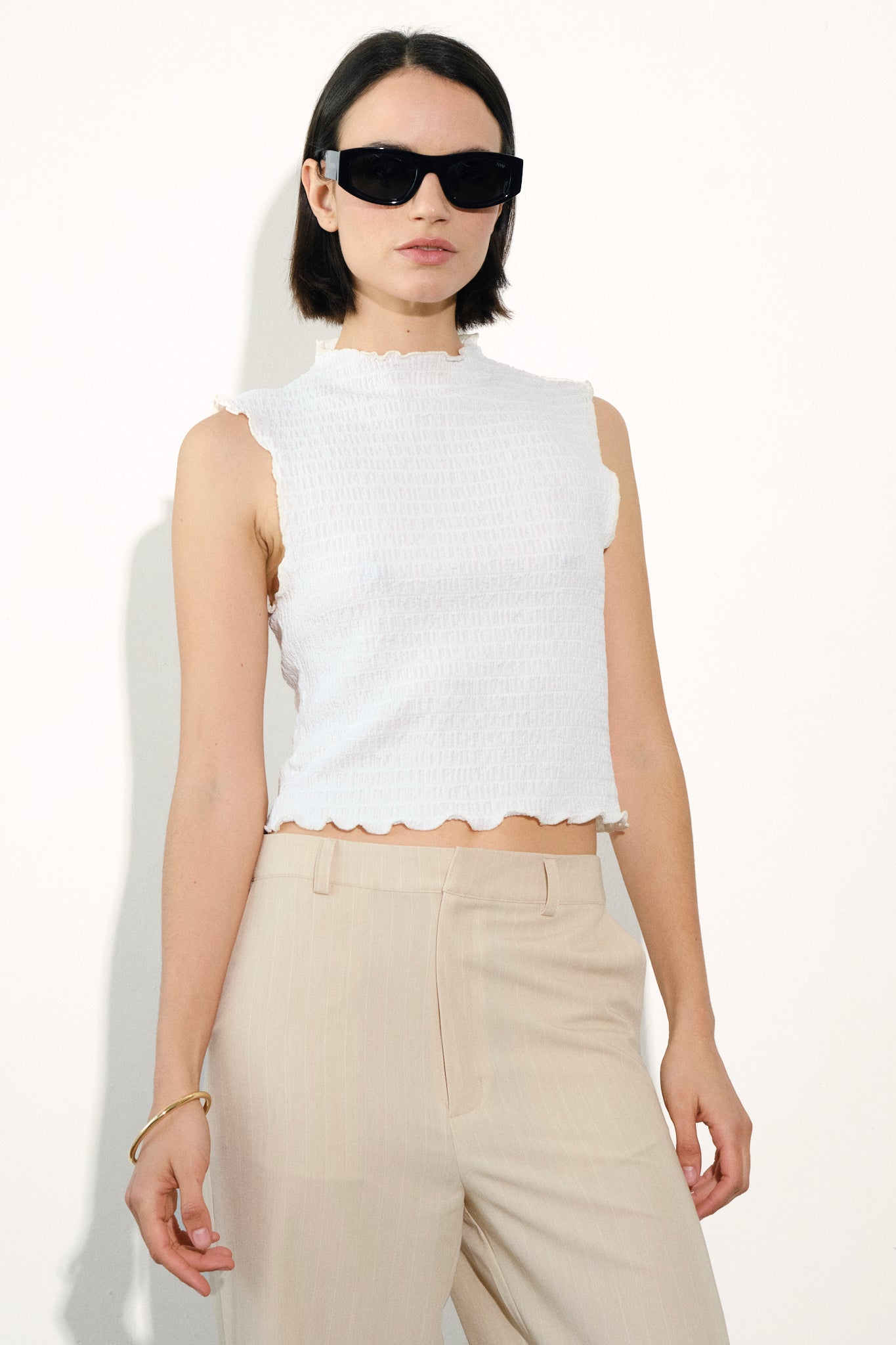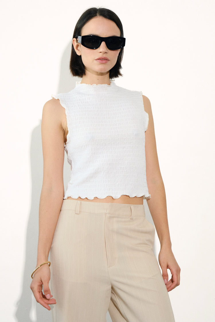 Top musculosa de punto texturado con cuello subido