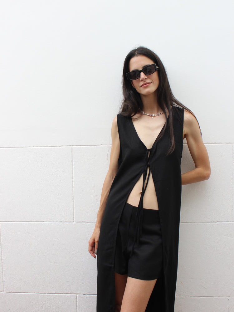 Túnica de lino con tiras para atar en delantero. Ideal para usar en conjunto con el Short Romance.