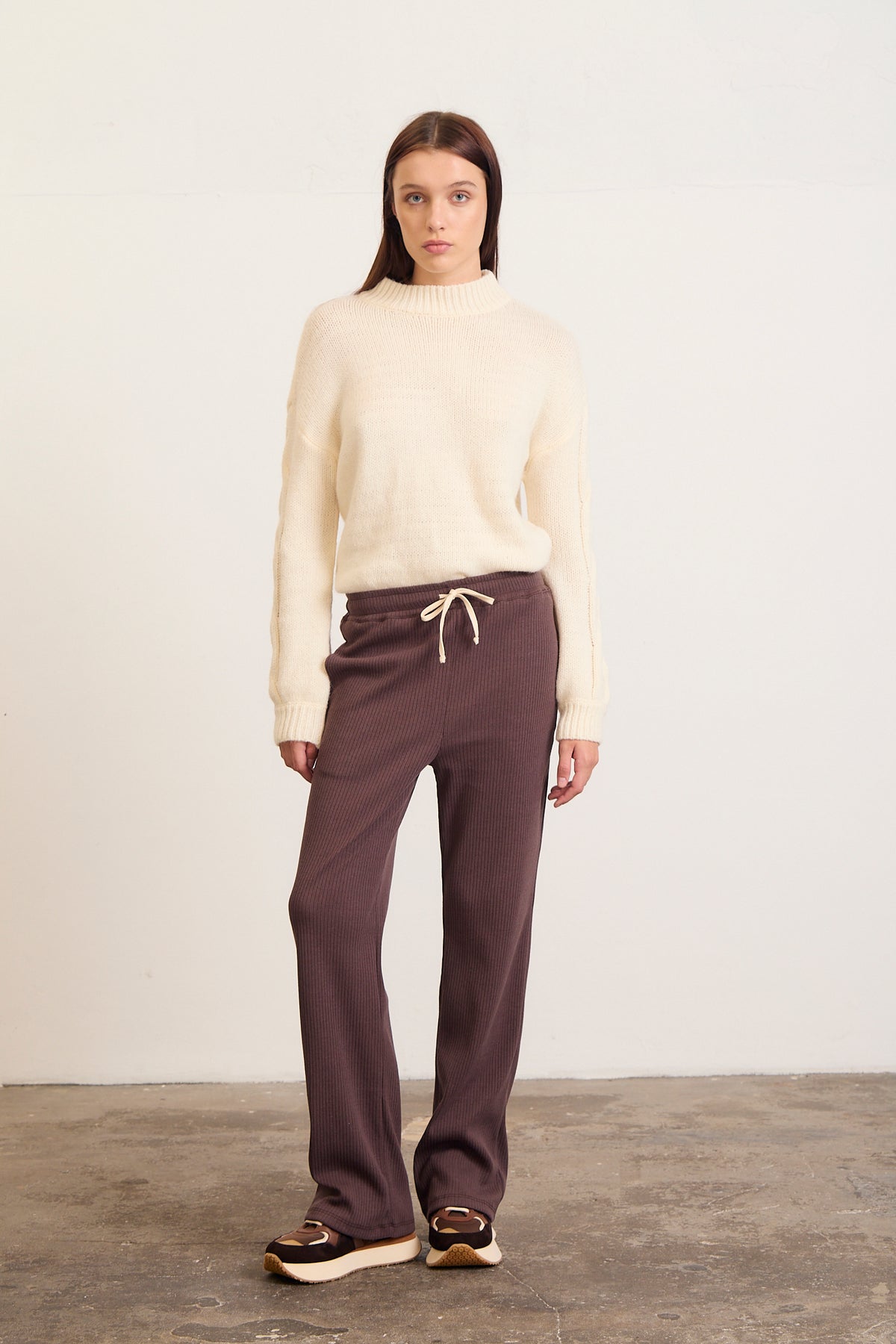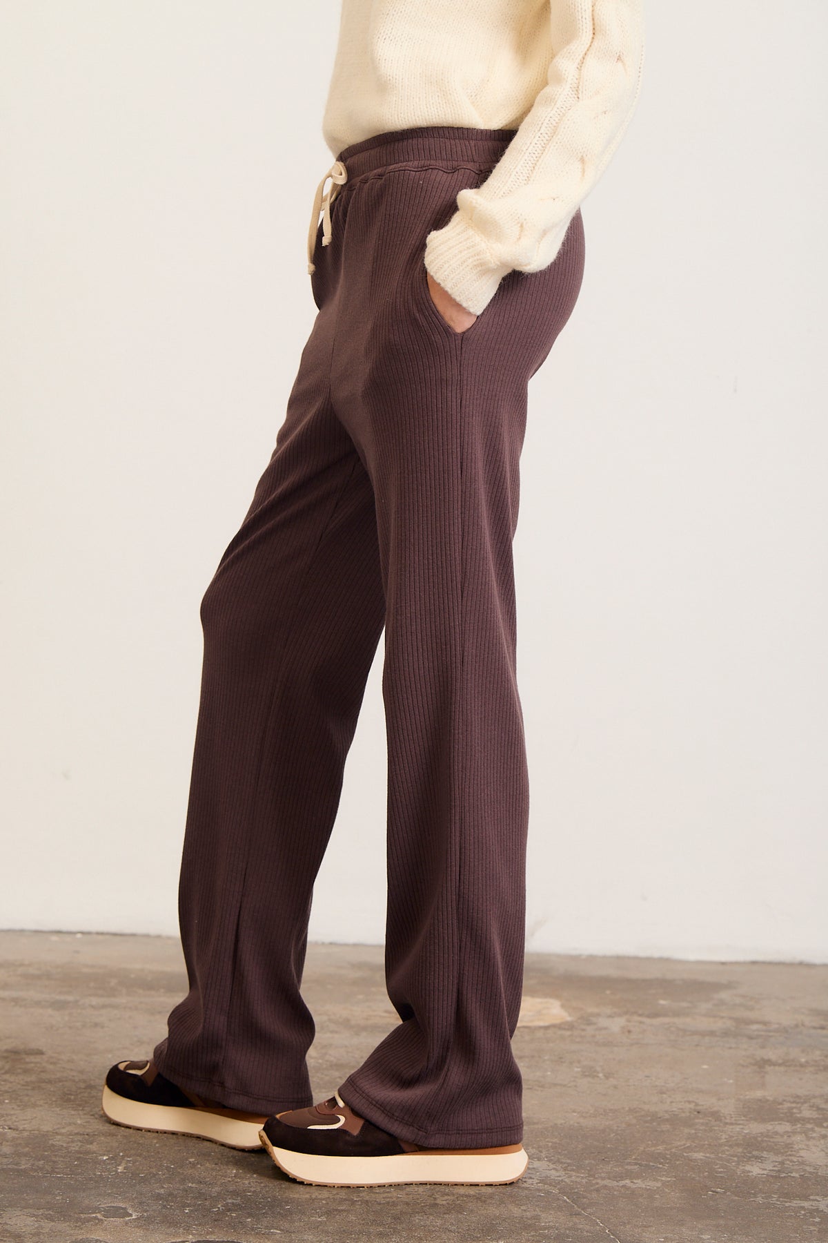 Pantalón de ribb de fit recto con cordon en cintura para regular