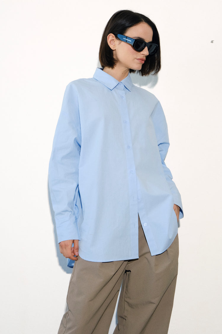 Camisa oversized lisa con detalle de botón en espalda