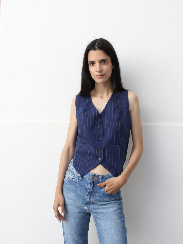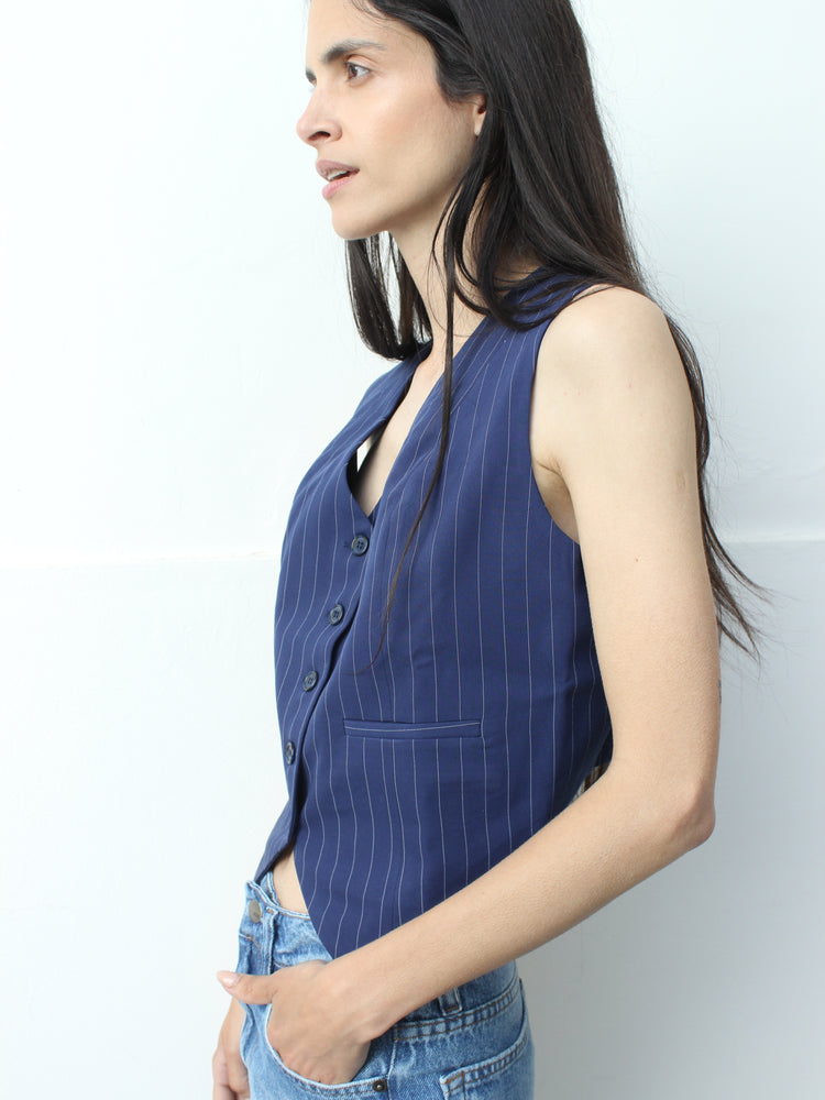 Chaleco sastrero clásico rayado con bolsillo ojal y espalda más corta