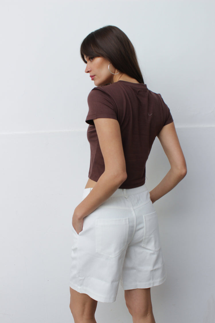 Remera básica corta anatómica con bordado Monograma TNB a contratono en espalda